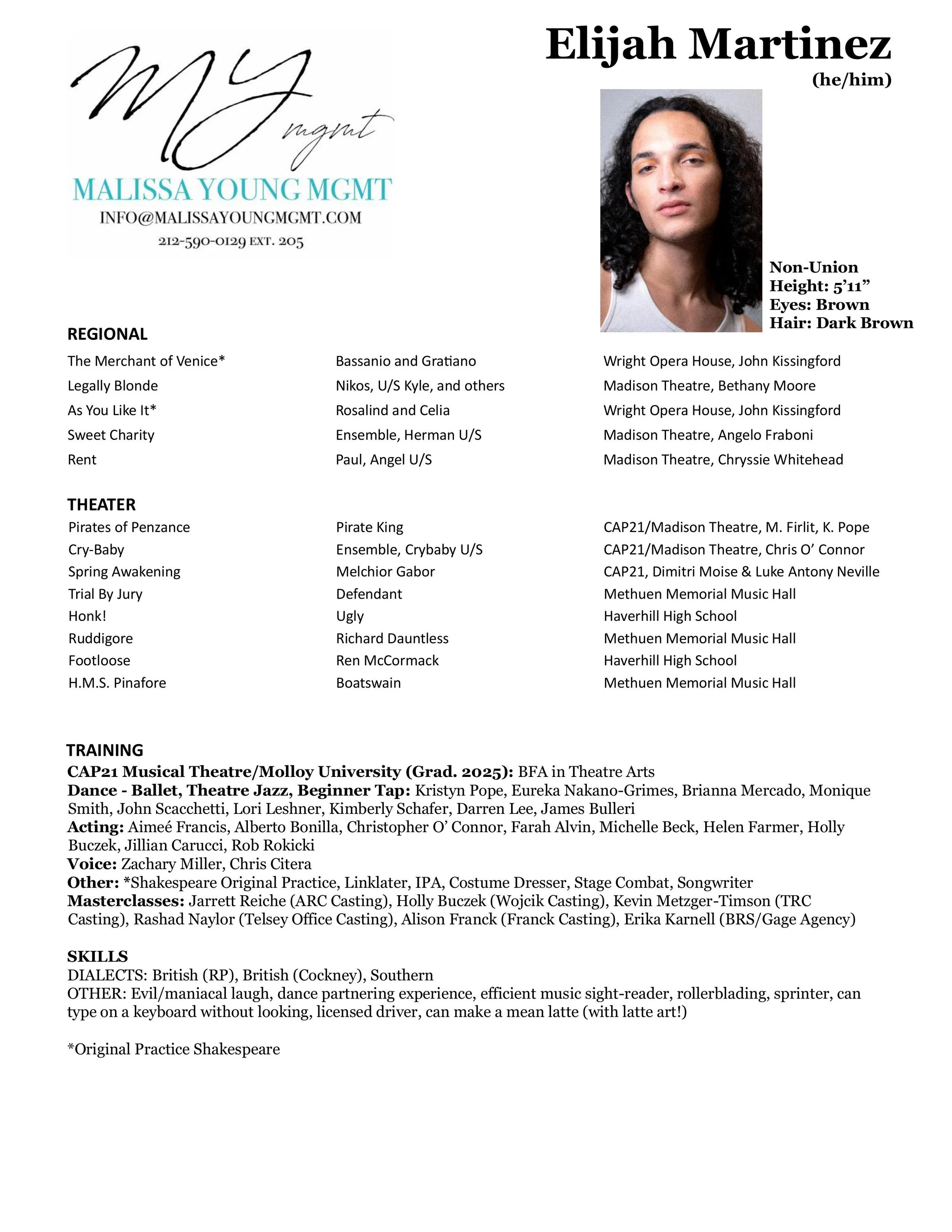 Download Resume (PDF) Reels Below! Download Headshot (PNG) Vocal/Performance Reel Dance Reel Acting/Self-Tape Reel Molloy/CAP21 Showcase Video “I Am The One” from Next to Normal Scene